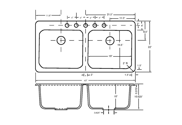 Model 743 CECO Drop-In Kitchen Cast Iron Sink
