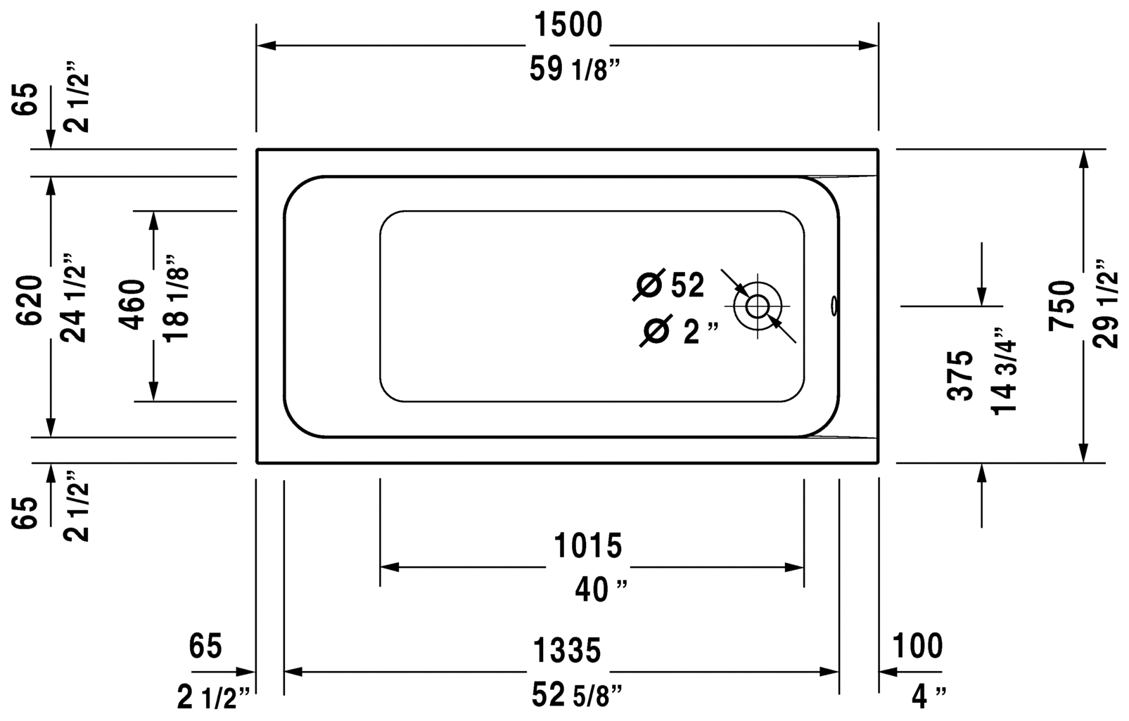 700095000000090 Duravit D-Code 59x29 Acrylic Soaking Bathtub with Reversible Drain - White