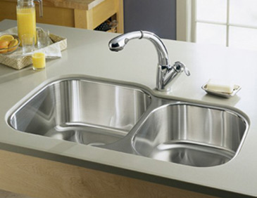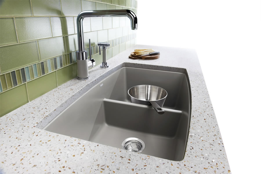 Undermount sinks allow you to brush items from the countertop directly into the sink without any “catch points” which can capture food particles and moisture. These sinks require clips and other mechanical fastening devices to attach them to the countertop. Heavier kitchen sinks, made out of cast iron or stone require a well-designed mounting system in an undermount installation.
