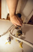 | Finally, take the aerator out of the new faucet, turn on the water, and let it run for a few moments to flush out any metal scraps and such that might be left from the manufacturing process. Enjoy your handiwork and take pride in knowing that you "did it yourself". |